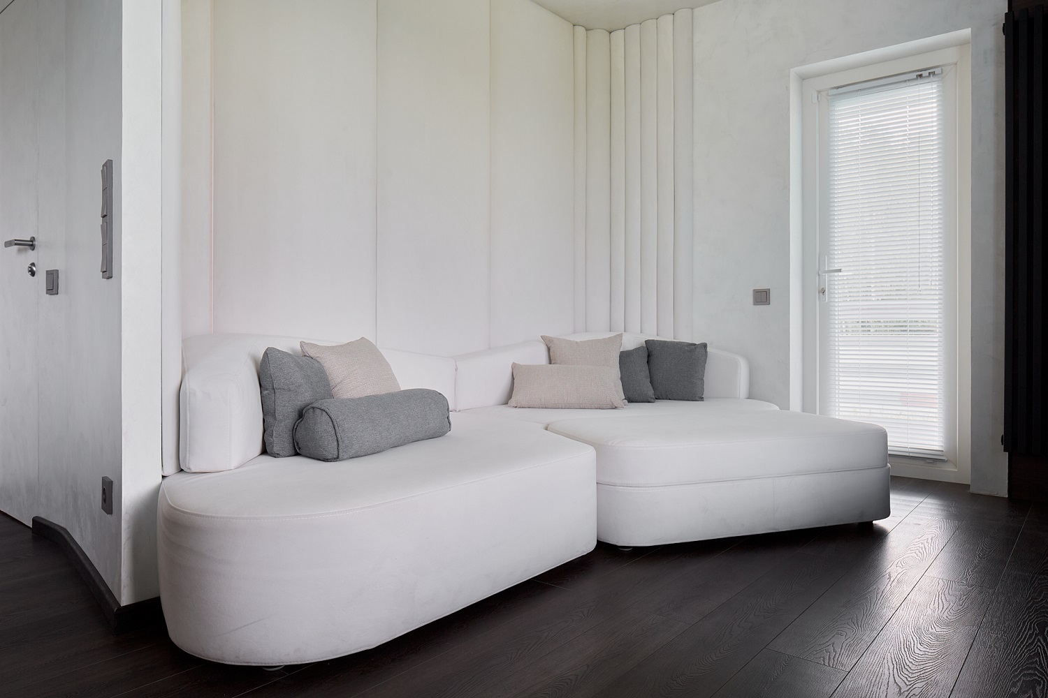 Для оформления стыка со стеной мы выбрали также и дюрополимерные плинтуса этой фирмы. Меня привлек лаконичный дизайн, легкость монтажа и возможность покраски - больше не будет проблем с выбором плинтуса под цвет пола.