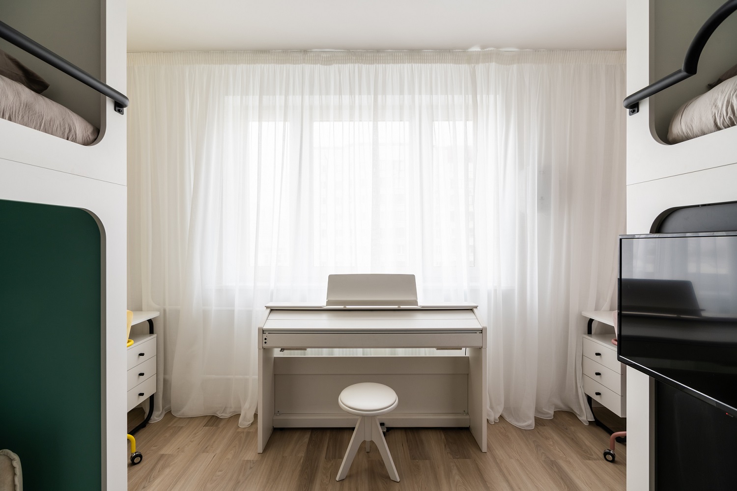 На полу — кварцевый ламинат Fargo Classic Дуб Бангкок 64W965: за такой пол не страшно даже в детской.